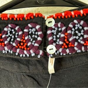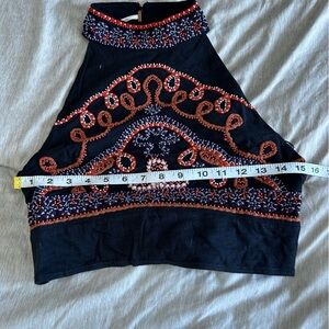 NWT Free People Boho Hippie Black Halter, Tie Back, Embroidered Beaded Crop Top