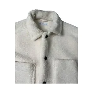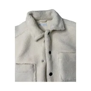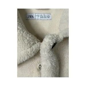 Zara Fleece Overshirt S-M Ecru White faux shearling shacket jacket coat shirt