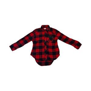 Abercrombie Kids, girls size 3-4 red plaid flannel shirt with sequin pocket.