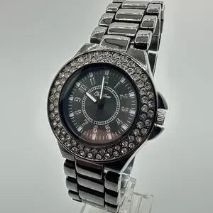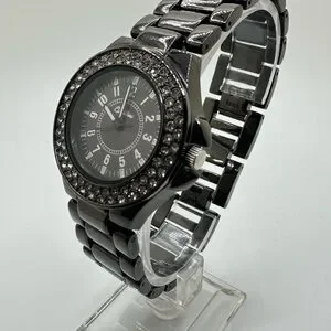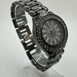 Men’s Curations Brand Black Chrome and Rhinestone Quartz Watch