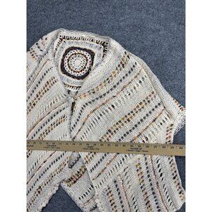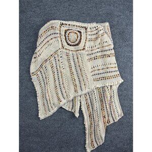 Moth Poncho Wrap Womens One Size Ivory Multicolor Knit Crochet Boho Ruana Cape