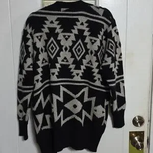 LuLaRoe Women's Cardigan Sweater Black/White Southwest Design Cozy Soft Sz M EUC. Measurements in pics. Pre-owned, very good condition.