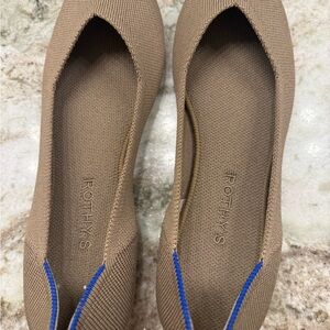 Chic tan flats featuring subtle blue highlights. Ideal for everyday comfort and style. Brand new never been worn.