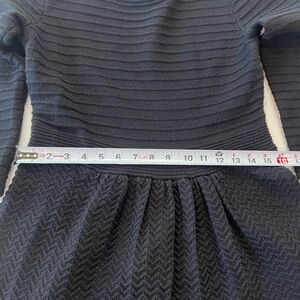 Gently loved- no flaws except for some pilling. Horizontal textured stripes on upper body, chevron pattern on bottom (is somewhat see through- would be perfect with leggings)