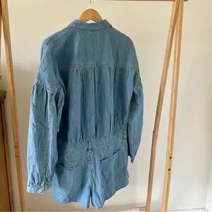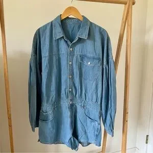 NWT Free People We The Free Zodiac Denim Chambray Romper in Moon Blue - L