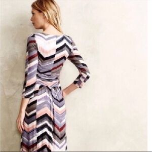 Anthropologie Maeve Novella Chevron Print Maxi Dress 3/4 Sleeves
