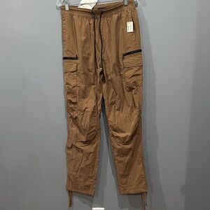 Right side: horizontal zip pocket, flap pocket with logo label, sideways flap pocket & lower-leg flap pocket