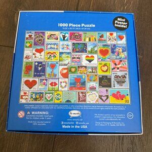 For sale is a very gently used 1000 piece Puzzle by Re-marks. Its a fun bright Love Letters puzzle. Comes in the box and sealed in a ziplock bag. Also includes the mini poster. Made in the USA. Thanks for looking!