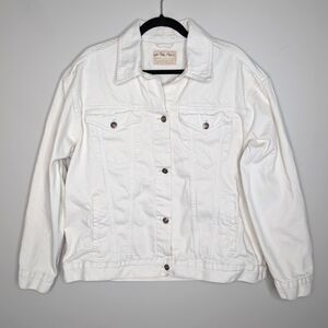 We The Free Jolene Trucker Distressed Denim Jacket Off White sz L