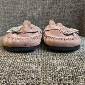 Free People Shearling After Riding Mule. Color is pink frost. I love the jeweled buckle detail! The faux shearling lining is perfect for the winter! There is a spot on the right front toe and some slight wear to the shearling lining. Women’s size 10