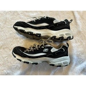 SKECHERS D’LITES COMFORT WALKING ATHLETIC SHOES WOMEN SIZE 7.5 BLACK WHITE