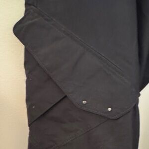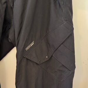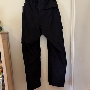 Stylish and versatile black snowboarding cargo pants for men. Size Small. With several cargo pockets and zippered thigh vents. Perfect for your outdoor adventures.