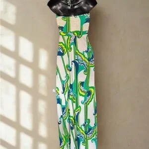 T-Bags Vibrant Green and Blue Patterned Maxi Dress | Size M