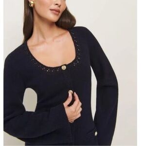 Reformation Priscilla Regenerative Wool Mini Sweater Dress Crochet Navy Large