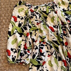 Stylish woman dress with a bold floral pattern. Features green and red highlights. Ideal for casual outings.