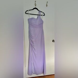 Chic one-shoulder design. Flattering fit with side slit. Ideal for formal events. Chiffon fabric. Worn once.