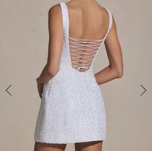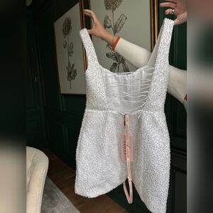 NWT, sold out online! White embellished A-line dress with a lace-up corset back. Amazing quality and detail. Runs small, it's a size 8, but fits more like a 4/6. Message me with any questions!