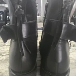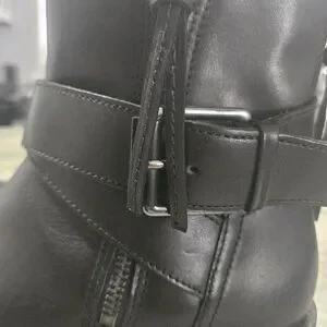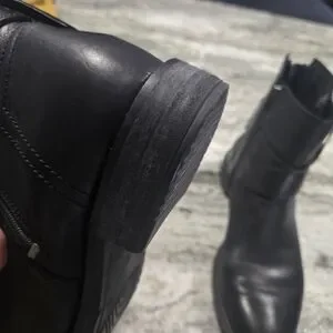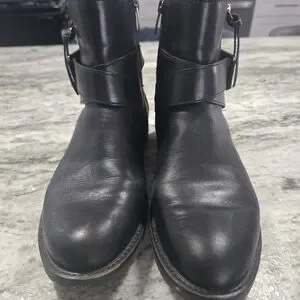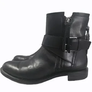 Sleek black leather wheel booties. Zipper close with added zippers and tassle for fashion details. Worn once.