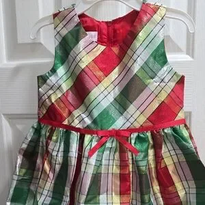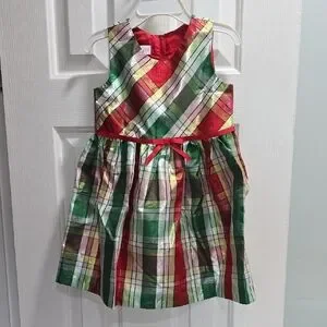 Bonnie Jean Red Coat with Gold Bow Accents and Plaid Dress Kid Size 4T
