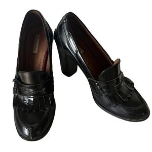 Massimo Dutti - Black Leather Heeled Loafers - Size 39