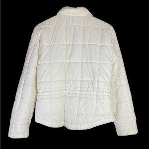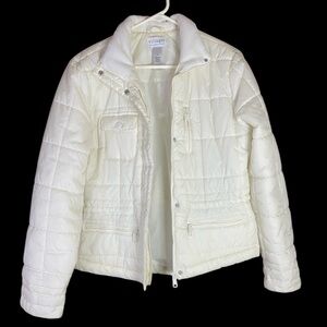 Liz Claiborne Villager White Puffer Jacket Collared Zip Pockets Buttons Sz Med