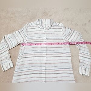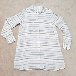 Garnet Hill Easy care 100% Linen Tunic Stripped Buttonup Blouse Oversized Size S