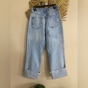 Trendy cropped jeans with a distressed look. Perfect for casual outings.