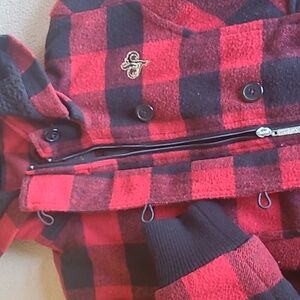 South Pole Red and Black Checkered Jacket Size M, Removable Hood, Zips & Buttons