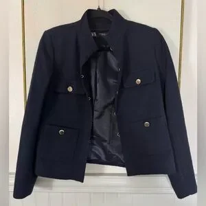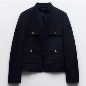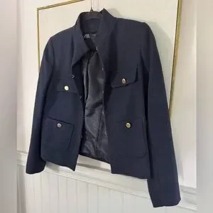 ZARA Textured High Collar Blazer Navy Blue Size M