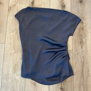 Asymmetrical One-Shoulder Satin Like Silk Like Top Navy Blue XS