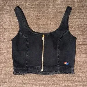 Aviator Nation Denim Crop Top with Zipper
