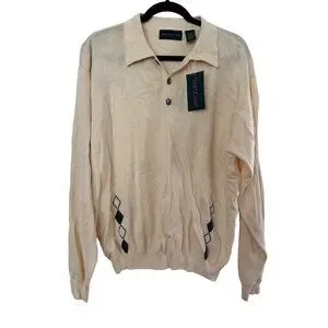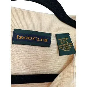 Vintage Izod Club Mens Beige Cotton Long-Sleeve Pullover Sweater With Argyle Det