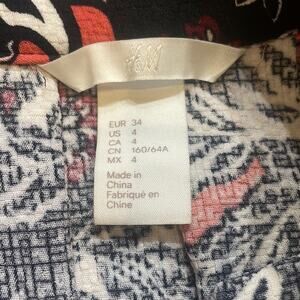 H&M Women’s Floral Print Peach Black Cream Midi Flowy Skirt Sz 4 Small