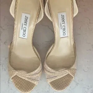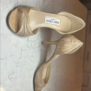Chic Jimmy Choo heels with a textured nude design. Ideal for elegant outings. Authentic. Used but in great condition! Make an offer!
