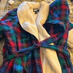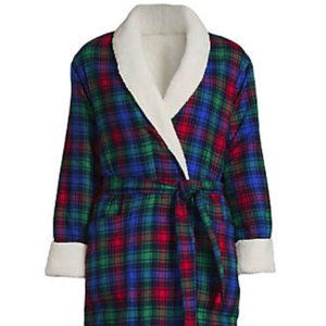 Keywords: Lands' End, robe, sherpa fleece, flannel, plaid, holiday gift, cozy, winter wear, cold-weather, gift-ready, NWT, holiday cozy, long robe, warm