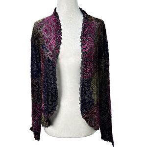 Women M Burnout Velvet Open Front Cardigan Lace Trim Fairy Goth Witchy Boho