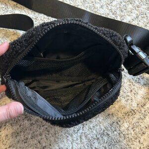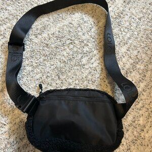 This black belt bag is by Lole, features a mock fluffy outside, zipper closure, exterior pocket, and adjustable strap. Lots of internal storage. Never use it. Great condition, all reasonable offers welcome!