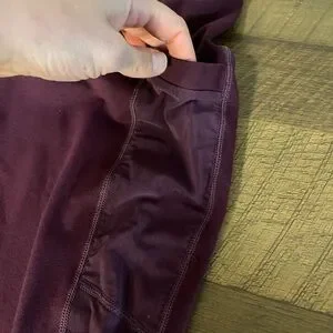 1st pair: full length, 29” leggings. This pair has side pockets (shown) and below the bottom of the pocket, has a mesh siding that you can see through