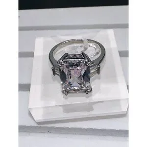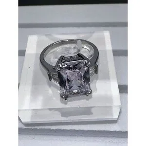Silver Plated Cubic Zirconia Princess Cut Ring Size 6