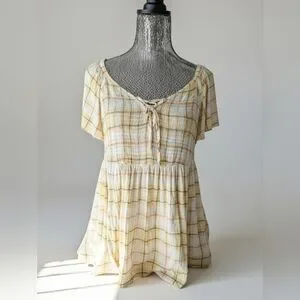 EUC yellow plaid Torrid top size 0x. Pretty fun flirty top short sleeve