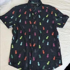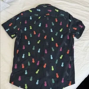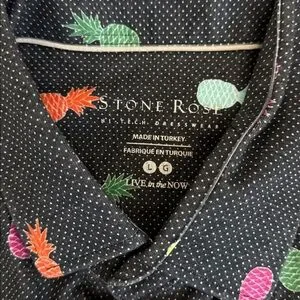 STONE ROSE Navy w/Pineapple Print Short Sleeve Shirt sz L