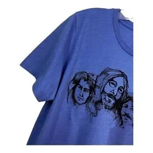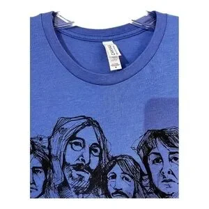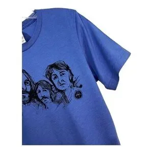 Blue Bella Canvas short sleeve tee with black sketch like graphic of The Beatles.
