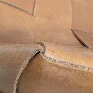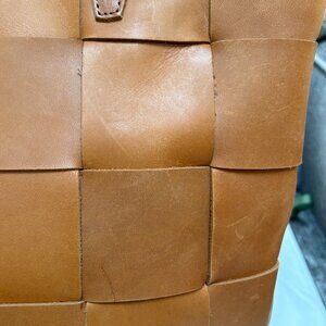 Carried fewer than five times. Great condition with light scratches as shown. Full-grain leather, hand woven, internal drop pocket. Measures 15" w, 12.5"h, 5"d. Strap drop 11". Includes branded dust bag.