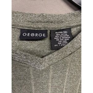 George Men's XL(46/48) Long Sleeve Ribbed V-Neck T-Shirt Green Cotton Blend
