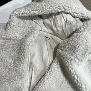 ALO quarter zip. NEVER WORN. Stay warm and stylish with this cozy white sherpa jacket. Perfect for chilly days, this jacket offers both comfort and fashion. No tags—brand new.