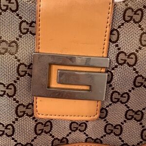 Good condition. Still has the plastic on the handle. The G has a bit of wear but it’s not super noticeable. Smoke free home. Could also use the fabric to up cycle. Y2K vibes. Multiple pockets.