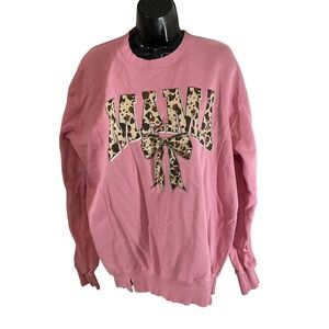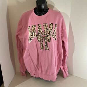 Simply Southern Mama Cow Print Pink Sweater Size Medium