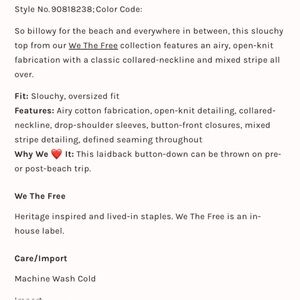 M099 // NWOT // Free People WE THE FREE Del Mar Cabana Shirt // XS