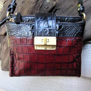 DEEP REDISH BROWN AND BLACK CROC GATOR EMBOSSED GENUINE SHINY LEATHER