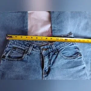 💙 Vintage pair of blue denim larger flare leg jeans by 'Liquid' out of my Authentic Vintage Collection - these are mine from the 1990's - well kept. There is natural distressing and fraying with noticable wear to the back of the bottoms.